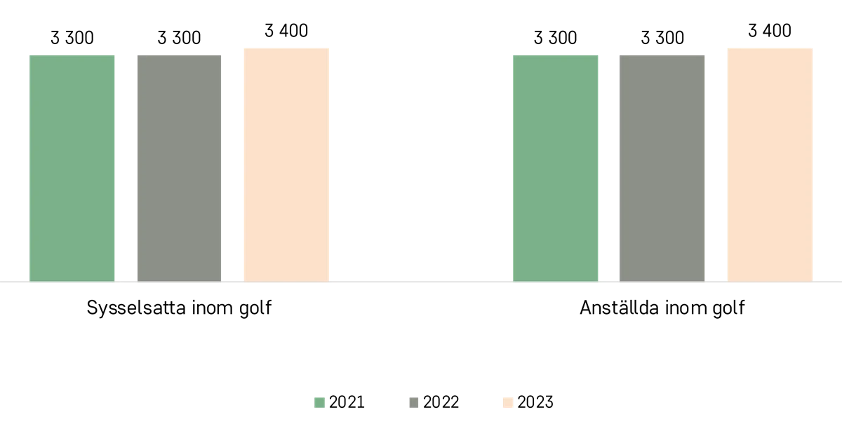 Antalet anställda och antalet sysselsatta ökade med 2 procent mellan 2021 och 2023. Vid sidan av golfbanorna förekommer en rad näringslivsaktiviteter som en direkt effekt av golfen, som restaurangverksamheter i anslutning till golfbanorna. Totalt blir golfföreningarna en viktig arbetsgivare för det lokala samhället och kommunen.