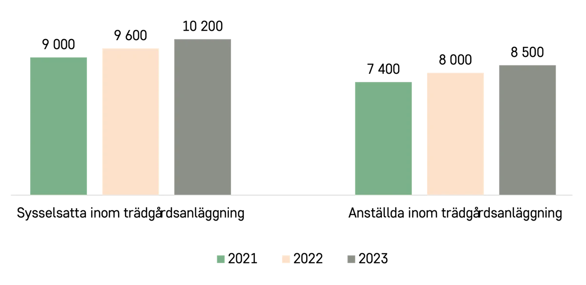 Antalet anställda ökade med 15 procent mellan 2021 och 2023. Under samma period har antalet sysselsatta ökat med 13 procent.