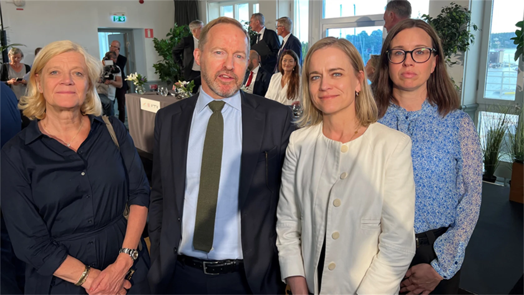 Bildtext: Lena-Liisa Tengblad, vd Gröna arbetsgivare, David Johnsson, vd TMF, Eva Glückman, vd Grafiska Företagen, och Anna Freij, förhandlingschef Grafiska Företagen och TMF, under signeringen av nya huvudavtalet.